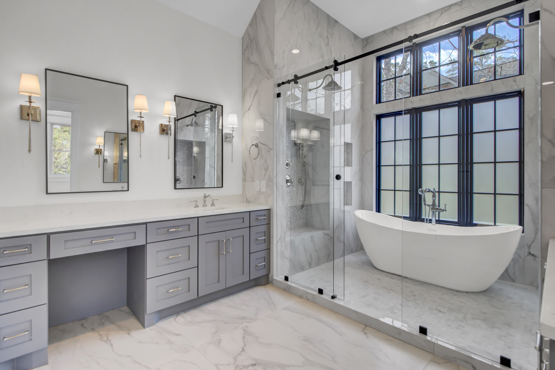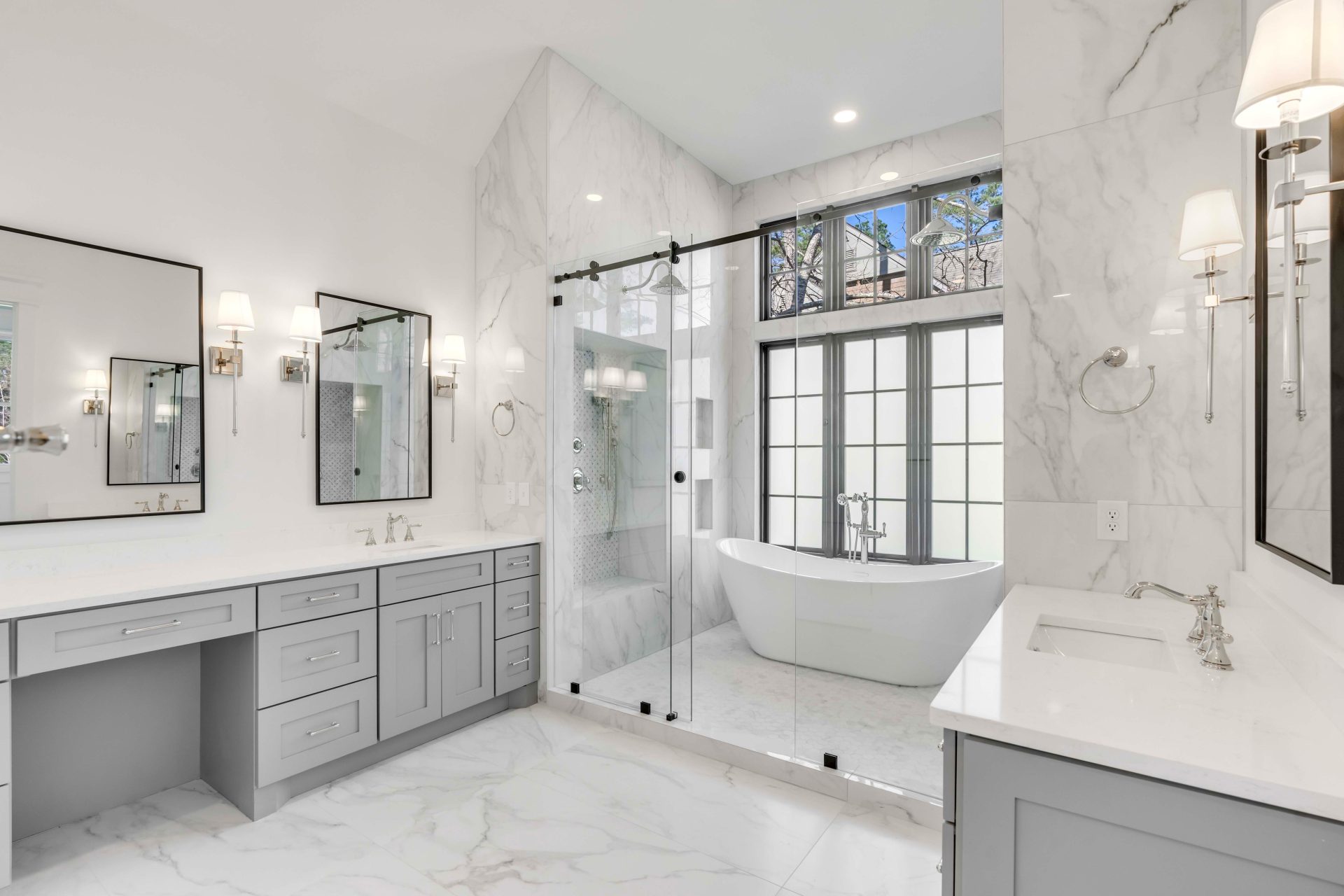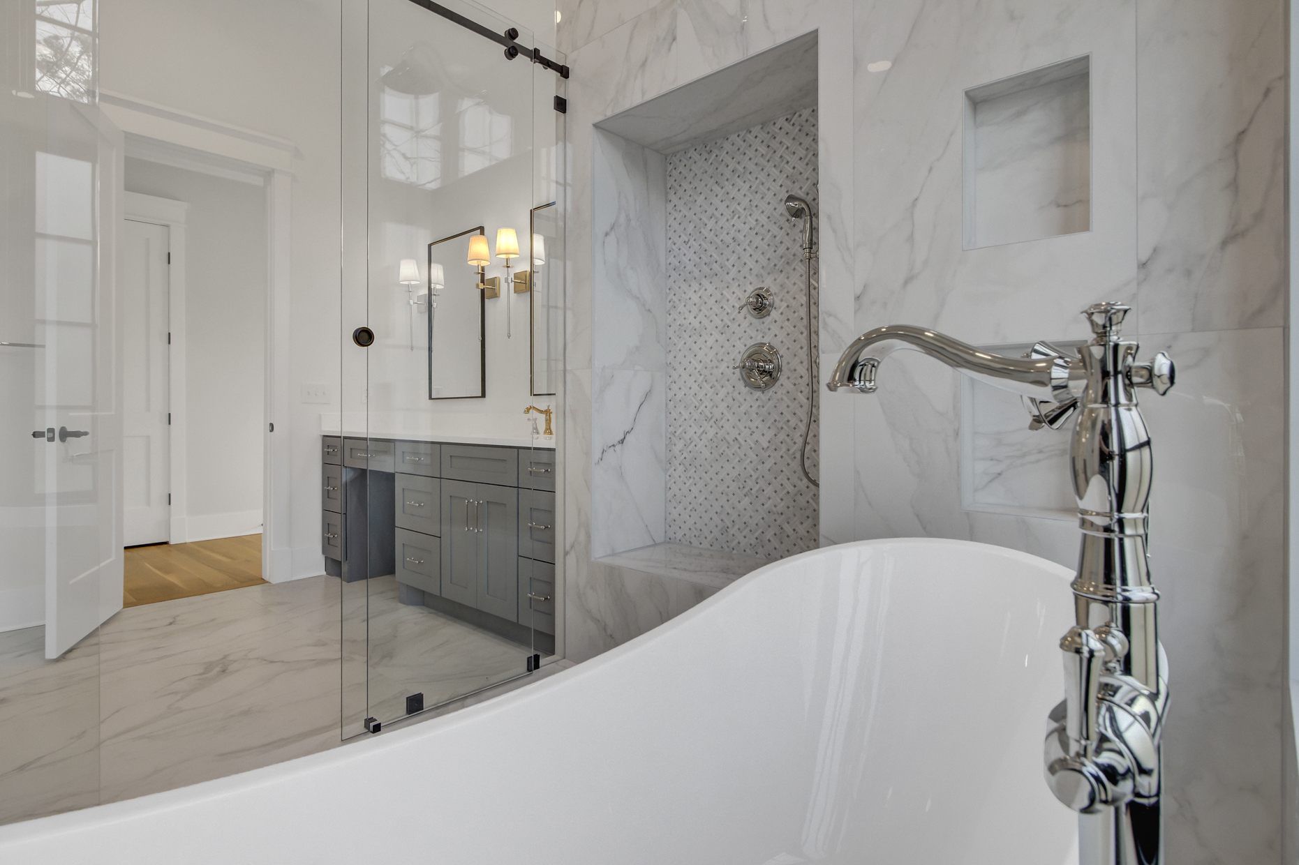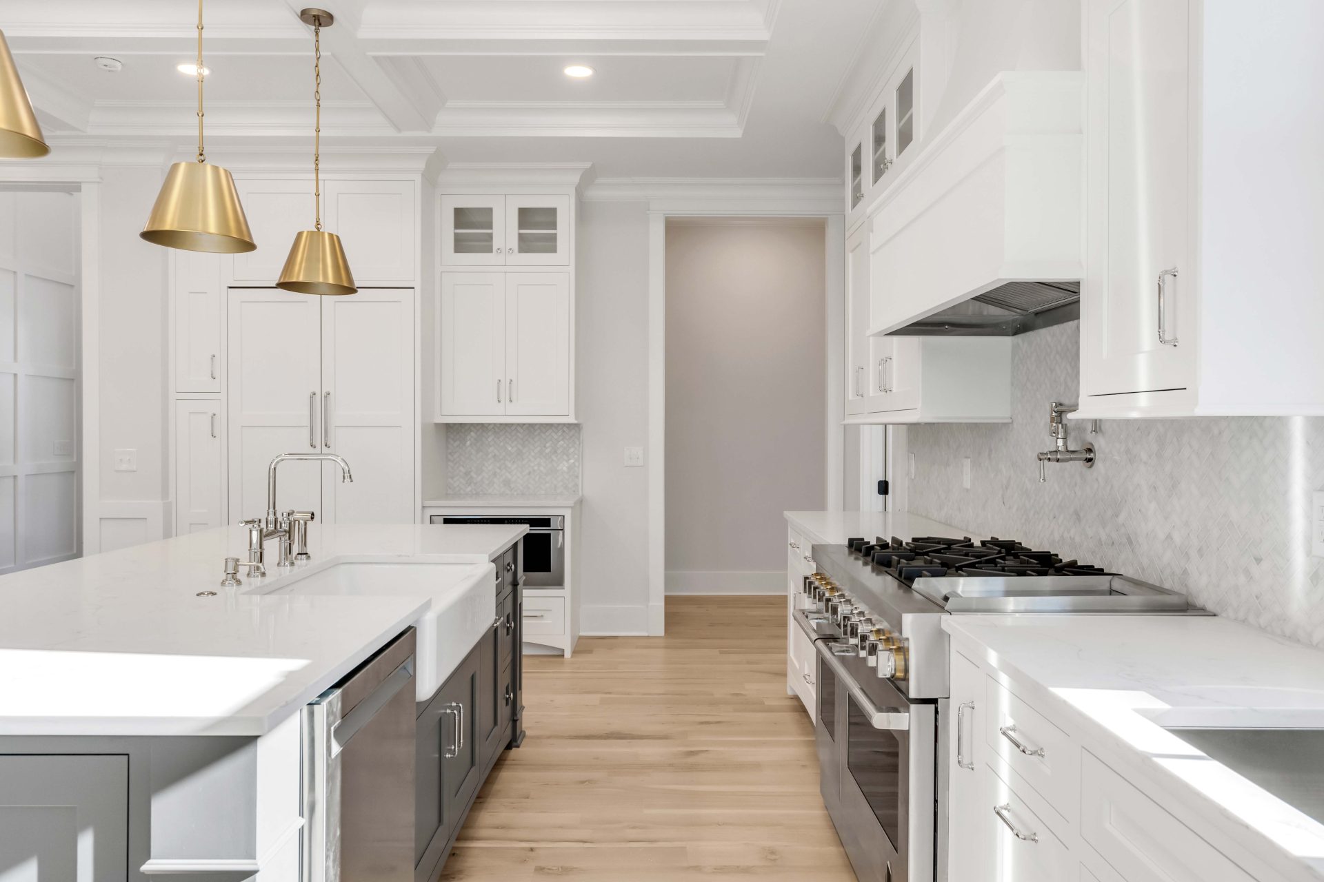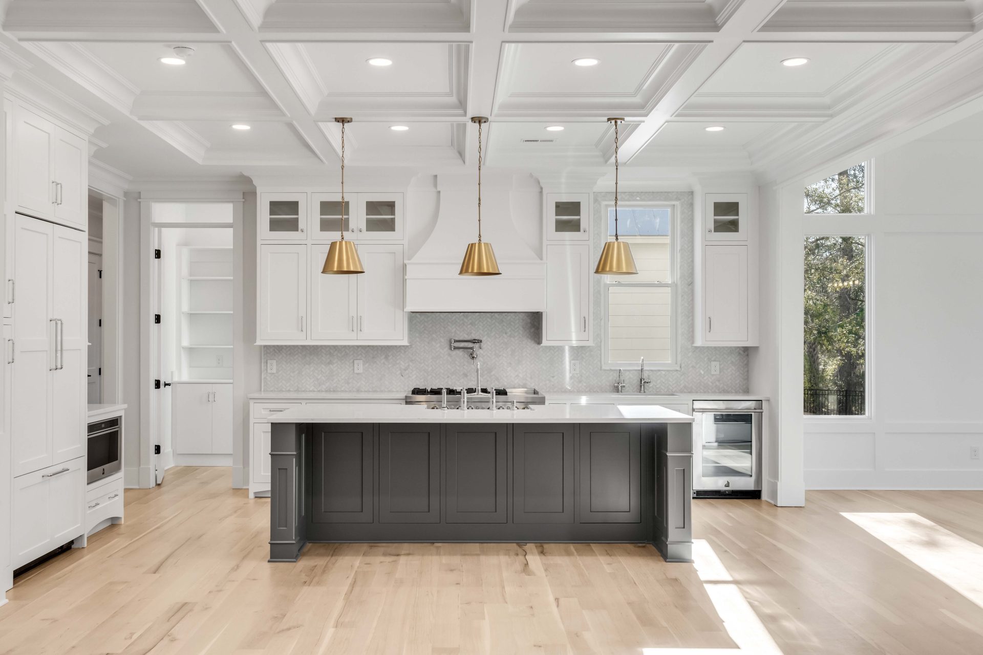 Modern Farmhouse and Greek Revival inspired custom home is under construction on 1.28 acres within the beautiful and historic Poplar Grove community. 10′ – 14′ ceilings throughout the first floor with 9′ windows overlook an expansive and private marsh view. The large kitchen boasts inset custom cabinetry hosting professional JennAir appliances. All daily living has been located on the first floor, including the owner, guest, reading and an office. The owner’s bath boasts a cathedral ceiling with 9′ windows and appointed closet of nearly 150 sqft. The large screened porch with 12′ ceiling has been designed, along with the kitchen, living room and master suite, to take full advantage of the sunset views available over the marsh. Upstairs are located three more bedrooms with on-suite baths as well as a large bonus room and conditioned storage over the 3 car garage. Home offers a total of 5 bedrooms, 4.5 baths.